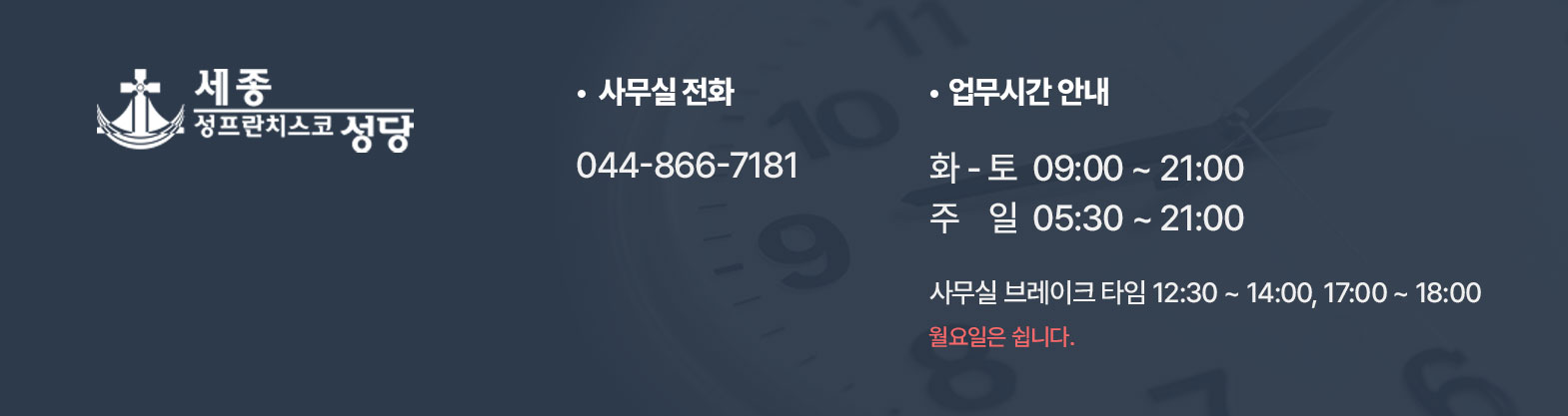 세종성프란치스코성당 대표 : 최견우 사도 요한 세종특별자치시 마음안로 130 (고운동, 세종성당) 고객센터 : 044-)866-7181